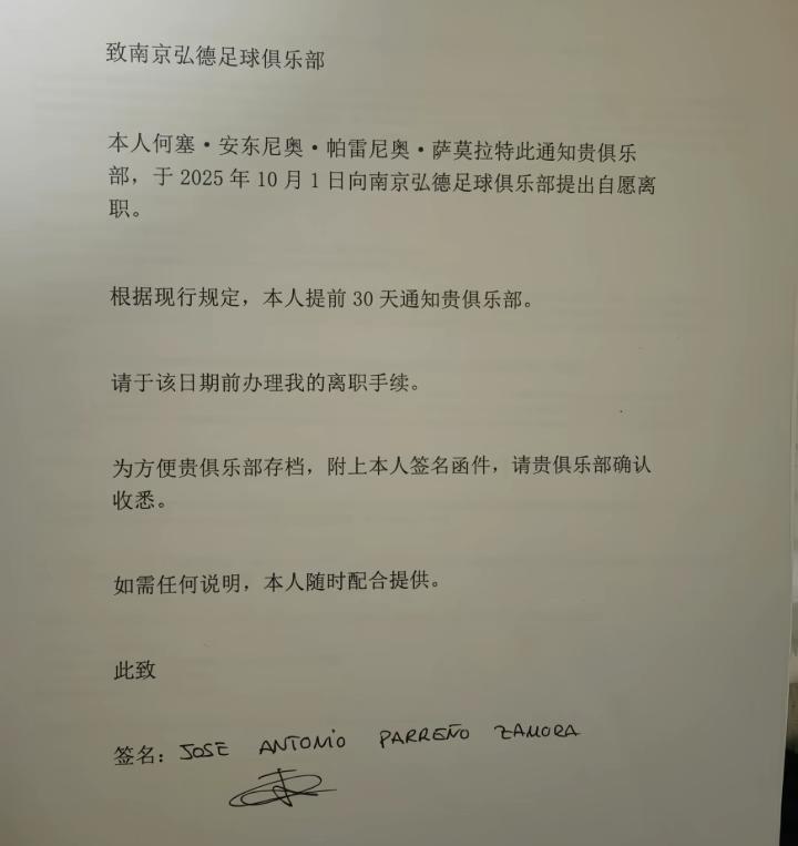 据江苏广电总台融媒体新闻中心报道,北京时间12月21日晚,2025赛季“苏超”南京队的西班牙籍主教练何塞发布社交媒体动态,他已经向南京弘德足球俱乐部提出自愿离职,开始寻找新工作。