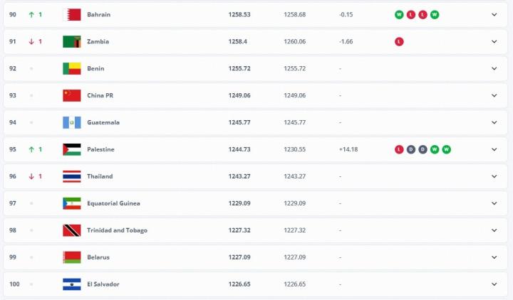 2025年最后一期FIFA排名:前10无变化;中国仍排世界第93