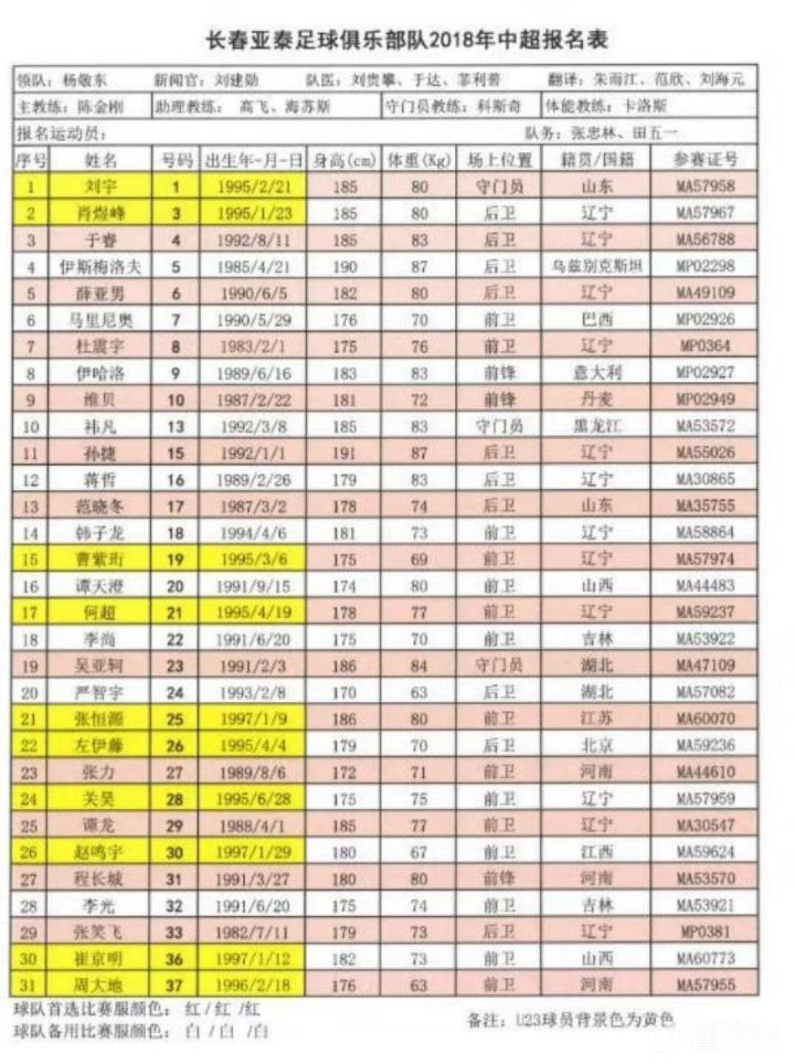 店小二北京时间3月1日,中国足协发布了《中国足球协会关于2018中超联赛U23球员报名名单进行公示的通知》,其中,参加2018赛季中超联赛的长春亚泰31人大名单已经公布。新援拉塞身披10号战袍,薛亚男、韩子龙、谭天澄、严智宇分别身披6号、18号、20号、24号战袍。