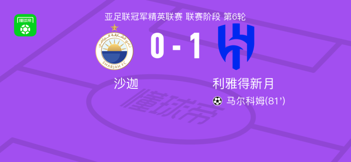 利雅得新月1-0沙迦,马尔科姆绝杀