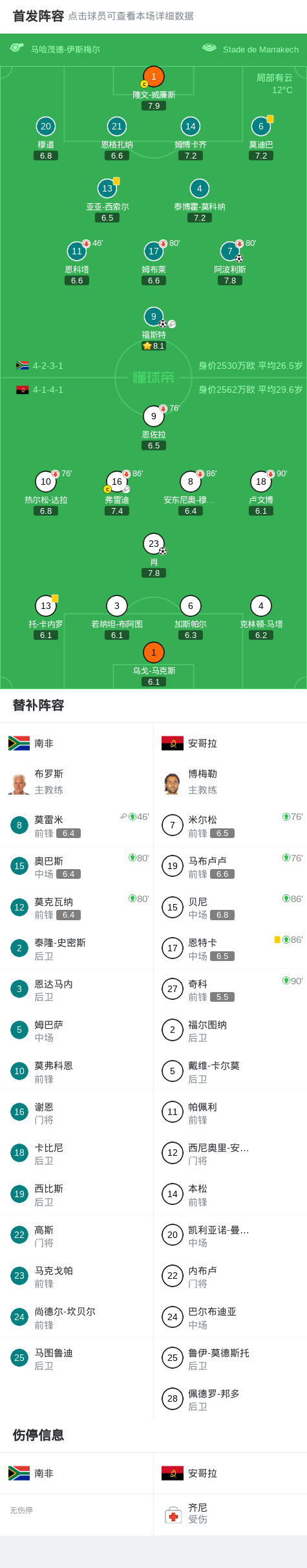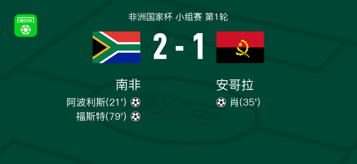 北京时间12月23日非洲国家杯 小组赛 第1轮,南非对阵安哥拉。南非阿波利斯破门,福斯特破门。安哥拉肖破门。最终比分南非 2-1 安哥拉。