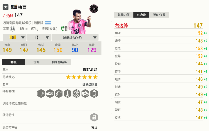 提到内切射门,那就不得不提梅西,他是内切射门的标志性球员,曾经有“梅西走廊”一说。在游戏里,梅西有极高的盘带和平衡能力,可以连续变向晃开跟防的后卫,从而获得射门空间。梅西的体力以及长途奔袭速度不算太快,所以在进攻展开时,可以多打二过一配合,让梅西来到进攻三区,再负责持球推进。