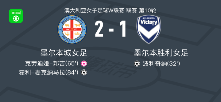 墨尔本城女足2-1逆转墨尔本胜利女足,霍利-麦克纳马拉破门