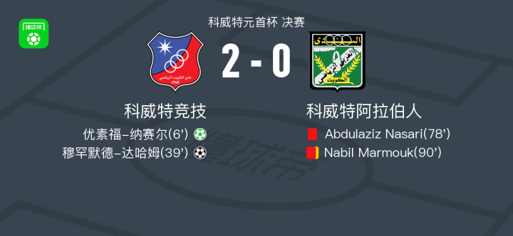 科威特竞技2-0科威特阿拉伯人,优素福-纳赛尔破门,穆罕默德-达哈姆锦上添花