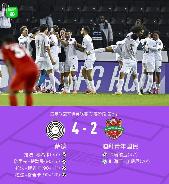 补时连进三球逆转,萨德4-2迪拜青年国民,拉法-穆希卡戴帽