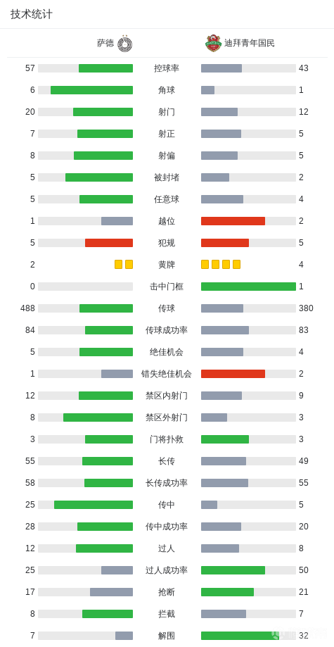 下半场补时第5分钟,萨德球员菲尔米诺助攻塔里克-萨勒曼打入一球。