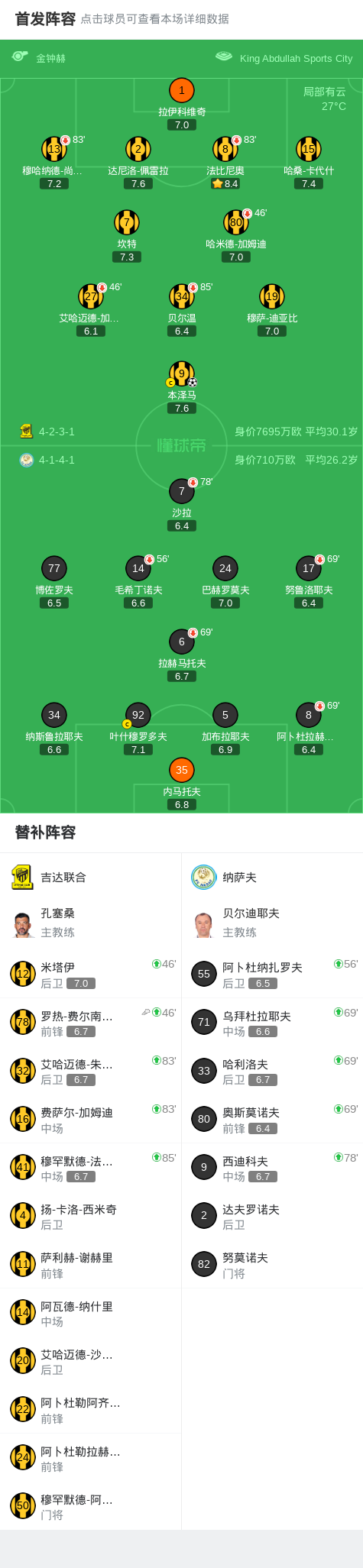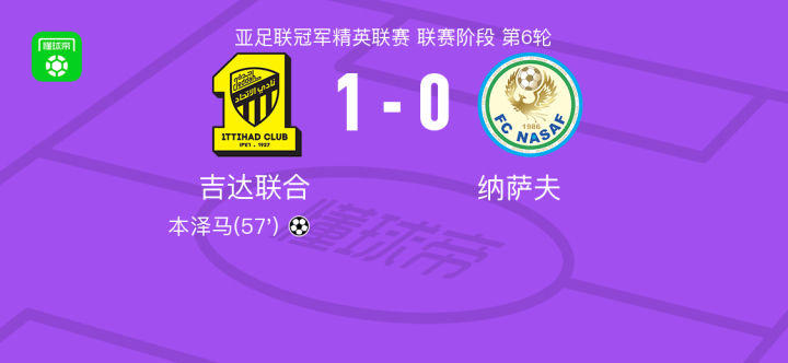 吉达联合1-0纳萨夫,本泽马一剑封喉
