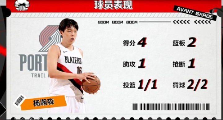 这是杨瀚森时隔5场比赛再度登场,但在开拓者队的机会实在是太少了,不仅没什么出场的机会,即便能出场也没有太多的表现空间。开拓者队还不如让杨瀚森继续在NBA发展联盟打球,在更多的出场时间里锻炼自己的体能和技术稳定性。