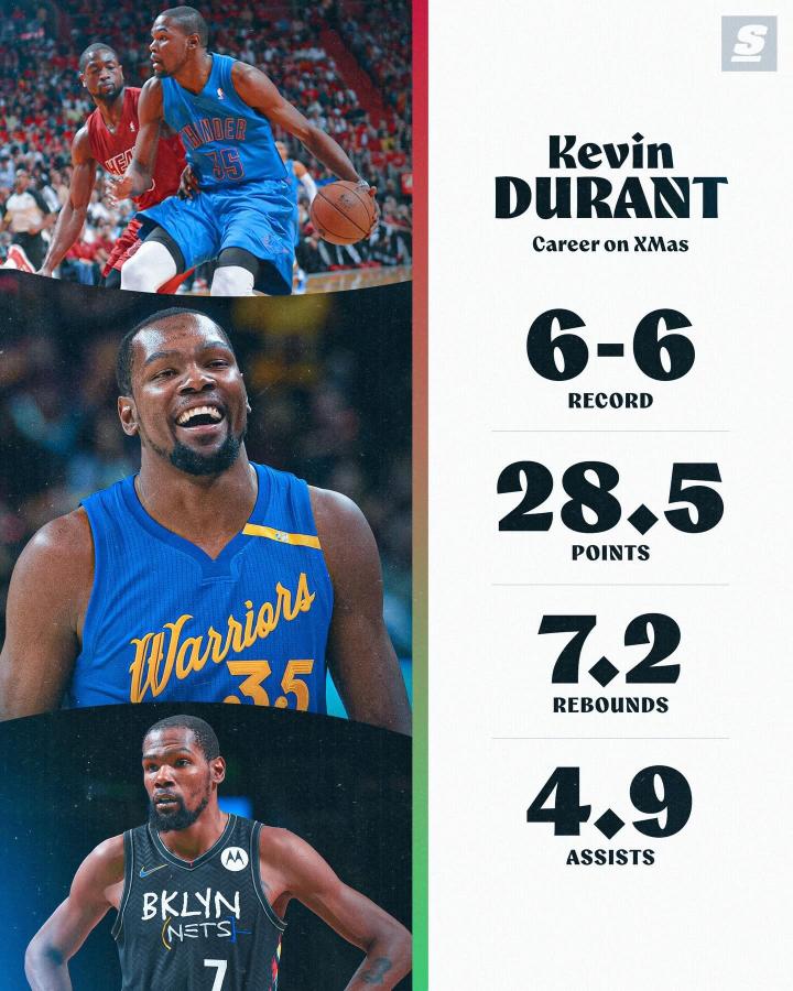 杜兰特圣诞大战6胜6负,场均28.5分7.2篮板4.9助攻尼古拉约基奇 @懂球帝2025-12-25 10:21北京时间明日,一年一度的NBA圣诞大战即将打响。今日,美媒晒出了火箭球星凯文-杜兰特的圣诞大战数据。杜兰特自2007年进入NBA以来共参加了12场圣诞大战,共取得了6胜6负的战绩。杜兰特场均能得到28.5分7.2篮板4.9助攻。而他职业生涯常规赛场均能得到27.2分6.9篮板4.4助攻,整体表现略有微小下滑。北京时间明日9点,杜兰特效力的火箭队将在客场对阵詹姆斯所效力的湖人队。展开更多