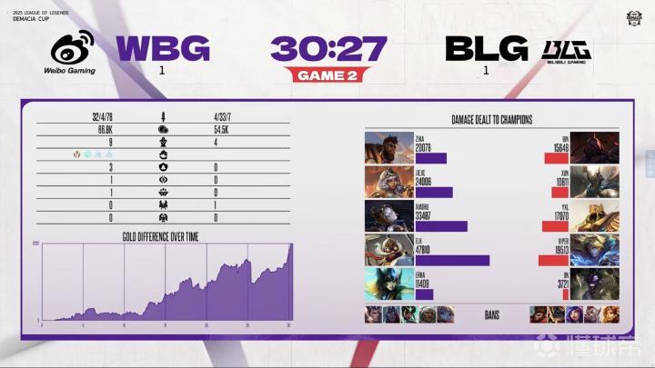 北京时间12月25日,德玛西亚杯第二阶段小组赛最后一场,BLG在先赢一局的情况下,连输两局,1-2不敌WBG,总战绩1-3小组垫底无缘八强。
