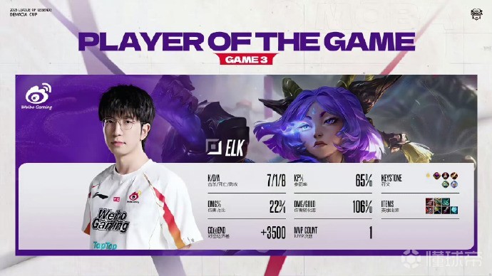 本局MVP给到前期下路打出突破口的Elk