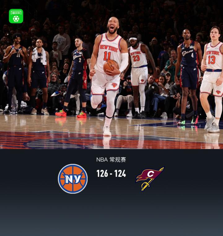 第四节尼克斯布伦森拿下13分,骑士米切尔拿下15分,最终尼克斯126-124战胜骑士