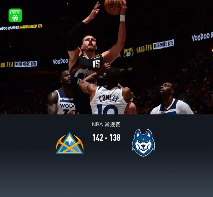 北京时间12月26日NBA 常规赛圣诞大战,丹佛掘金对阵明尼苏达森林狼。上半场双方相继打出高潮交替领先,半场掘金57-55森林狼,下半场掘金迅速建立两位数领先,末节中段掘金一度领先15分,随后森林狼兰德尔、爱德华兹接连得分反扑,爱德华兹命中绝平三分拖入加时,加时赛森林狼爱德华兹率先领衔打出9-0,紧跟掘金约基奇回应一波13-2反超比分,随后穆雷命中关键三分,爱德华兹连续两次技术犯规彻底葬送比赛,最终掘金142-138森林狼。