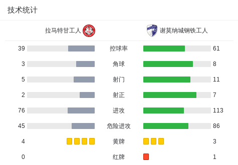 第90分钟,谢莫纳城钢铁工人球队吃到红牌。