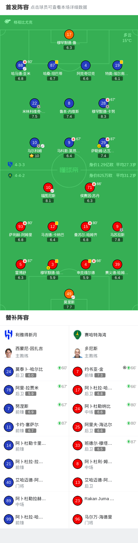第39分钟,利雅得新月球员马尔科姆助攻米林科维奇-萨维奇打入一球。