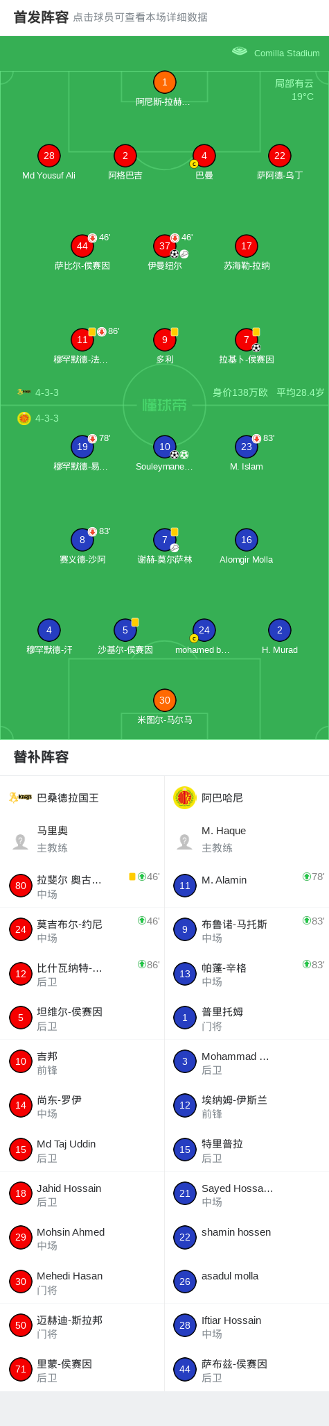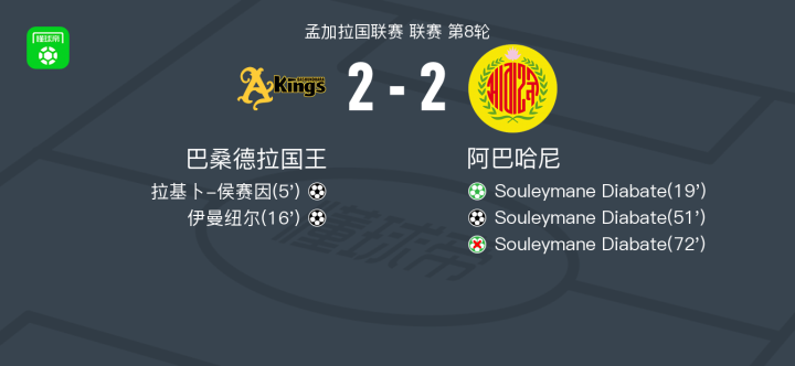 巴桑德拉国王2-2阿巴哈尼,拉基卜-侯赛因先拔头筹,Souleymane Diabate扳平比分