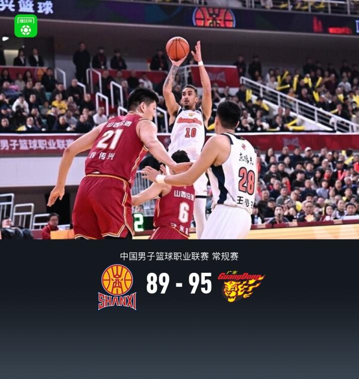 第四节,开节广东王洪泽中投率先得分领先20分,但随后广东进攻突然断电,山东诺威尔站出来连续12分领先一波14-1追至7分分差,紧跟贾明儒、韩霈瑜继续得分追至3分分差,来到最后3分钟关键时刻,广东胡明轩三分止血,紧跟萨林杰连续单打中投领先至8分,随后双方持续进攻不中,山西迪亚洛三分追至4分延续悬念,但随后迪亚洛5犯离场,萨林杰罚球锁定胜局,,全场结束,山西89-95不敌广东。