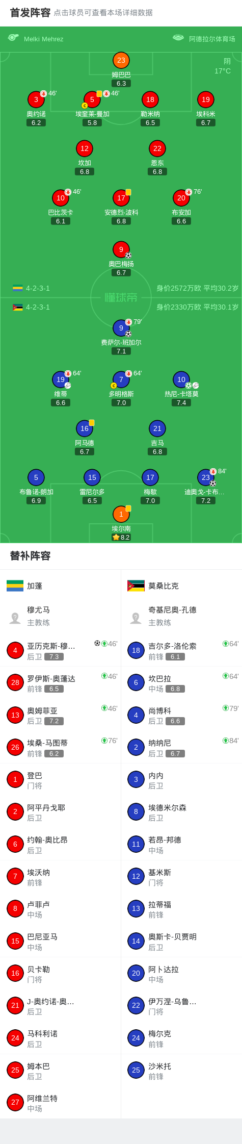 莫桑比克3-2加蓬,热尼-卡塔莫1传1射,迪奥戈-卡布拉尔建功