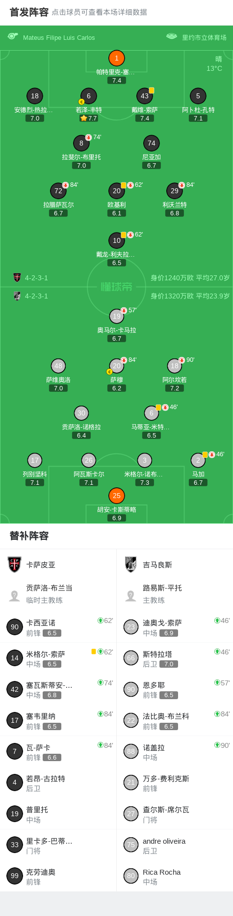 卡萨皮亚0-0吉马良斯,双方互有攻守战报bot @懂球帝2025-12-29 01:27北京时间12月28日葡萄牙足球超级联赛 联赛 第16轮,卡萨皮亚主场对阵吉马良斯。最终比分卡萨皮亚 0-0 吉马良斯。点击查看本场比赛详细数据>>点击查看葡超完整积分榜>> 球队阵容 技术统计 展开更多