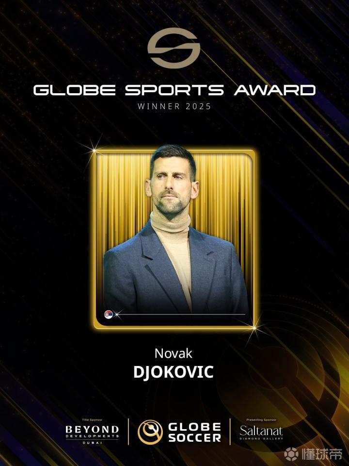 在迪拜举行的2025年环球足球奖颁奖典礼上还专门颁发了环球体育奖这一奖项,最终德约科维奇成功荣获该奖项。