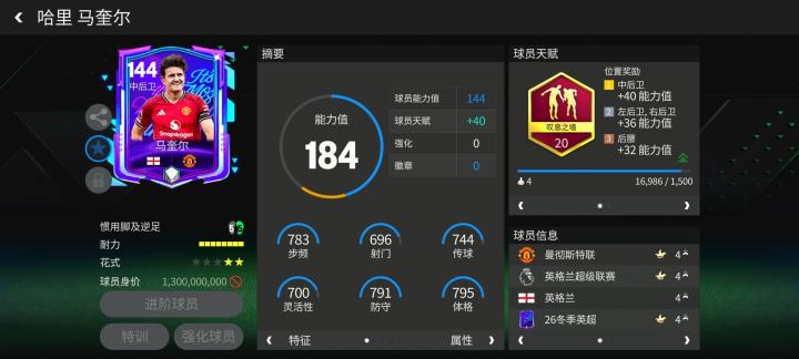 从“航母掉头”的笑柄,到“马奎真男人”的赞许,如今的马奎尔虽已不是“马队”,但他依旧在场上兢兢业业,贡献自己的力量。游戏中,冬季英超马奎尔同样配备了叹息之墙天赋,这让他的防守端整体表现更加可靠。