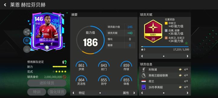 现年23岁的赫拉芬贝赫是利物浦中场的工兵,他本赛季至今3球3助攻的发挥可圈可点。游戏中,冬季英超赫拉芬贝赫配备了指南针天赋,提升了他的盘带、传球等数据。高级油炸丸子基础花式也让他的中场持球更加稳定。