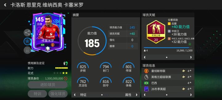 33岁的卡塞米罗在曼联的中场依旧扮演着重要角色,本赛季至今他已打进4球。游戏中,冬季英超活动推出的卡塞米罗配备叹息之墙天赋,提升了他的防守端关键数据,高级油炸丸子花式让他拥有了稳定的持球表现。