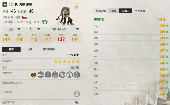 内德维德给人的感觉就是踏实,他的对抗踏实、护球好,不会轻易丢掉球权;他的射门踏实,该进的球不会随便打飞;他的手感踏实,盘带加速很舒服。内德维德还是攻防兼备的超级战士,团队作用极大。