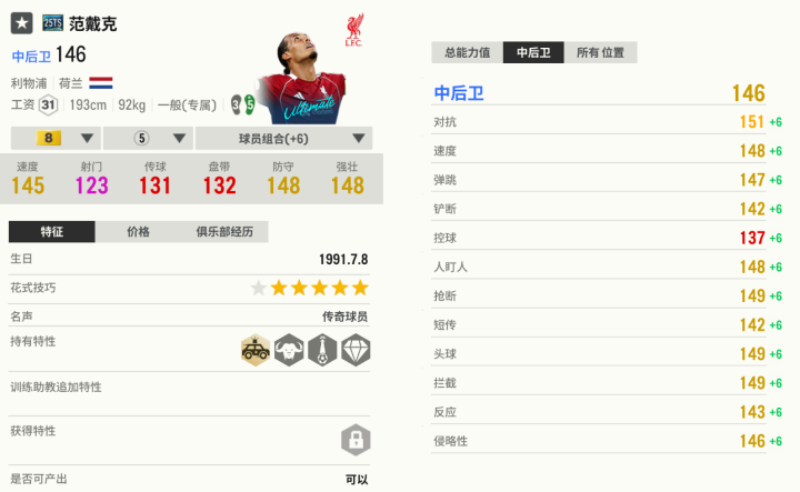 如果说传奇永恒C罗集结了所有中锋的特质,那么范戴克则囊括了一切中后卫应有的优点。抢断、盯防、补位、争顶、对抗、回追、出球,范戴克在这些方面没有任何问题,在使用他时,你会感觉到无比安心。