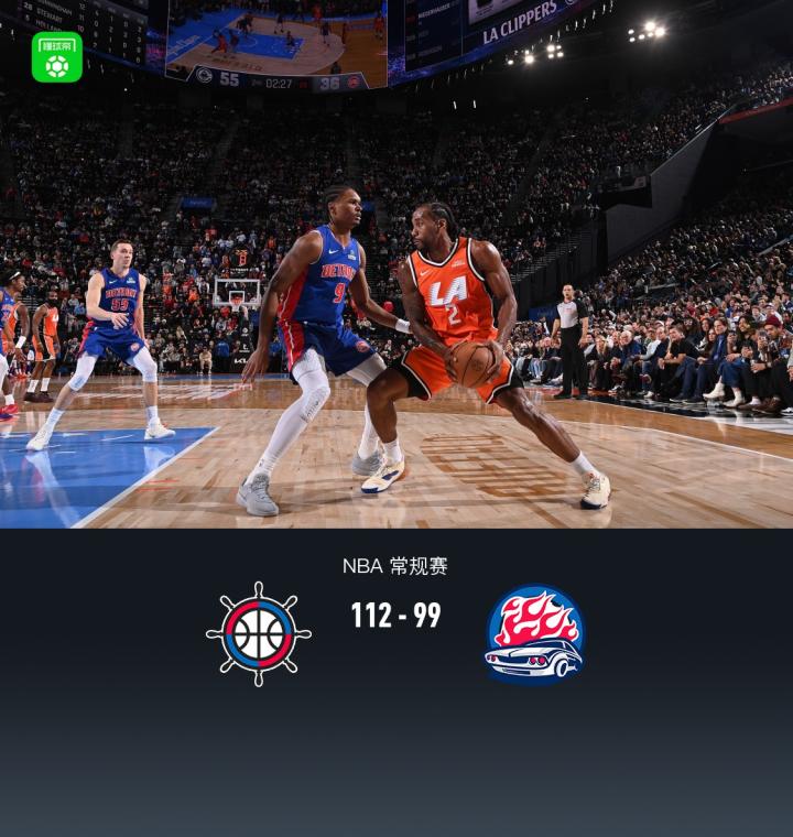 第四节快船哈登拿下11分,活塞坎宁安拿下12分,最终快船112-99战胜活塞