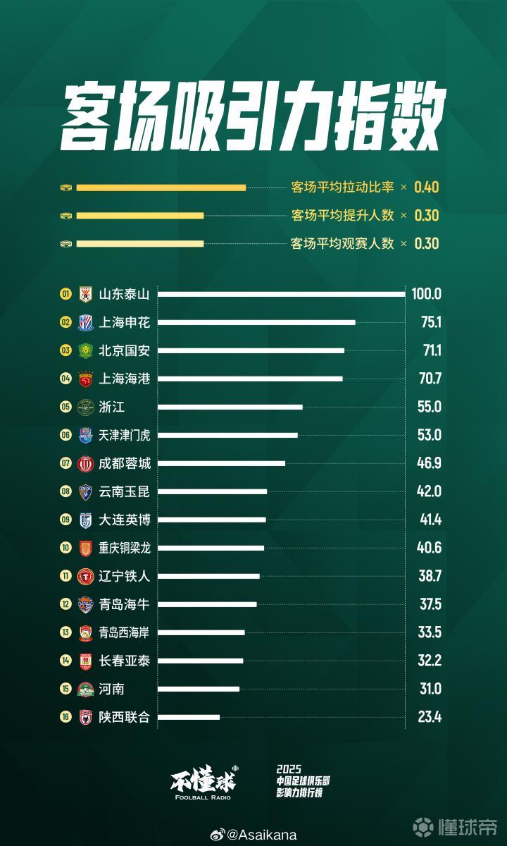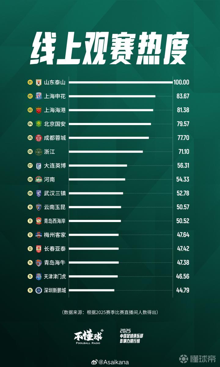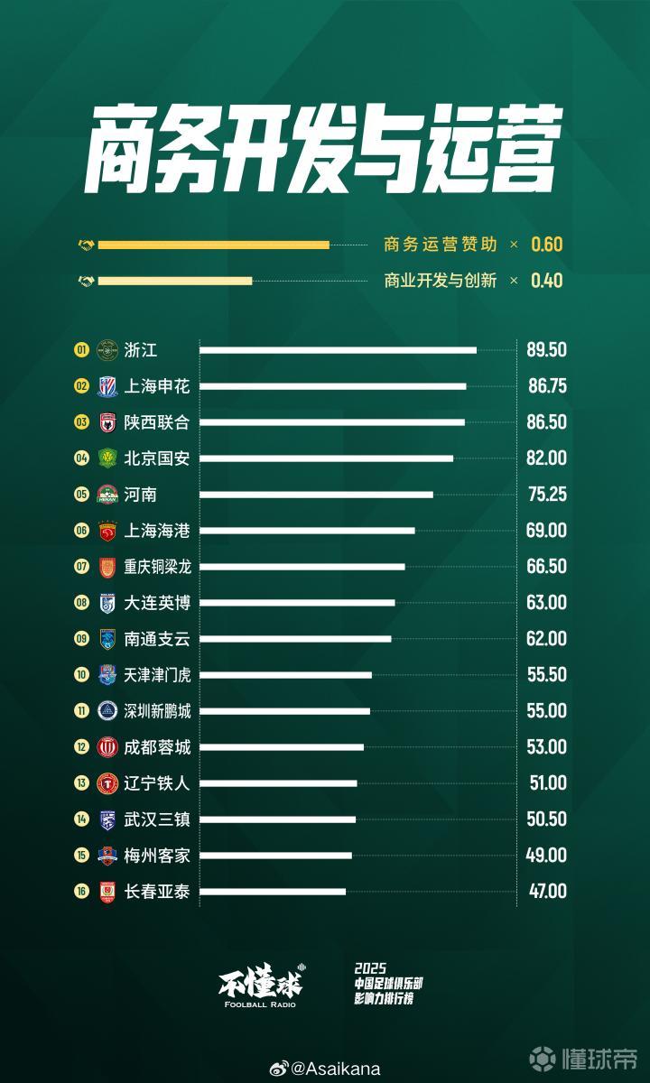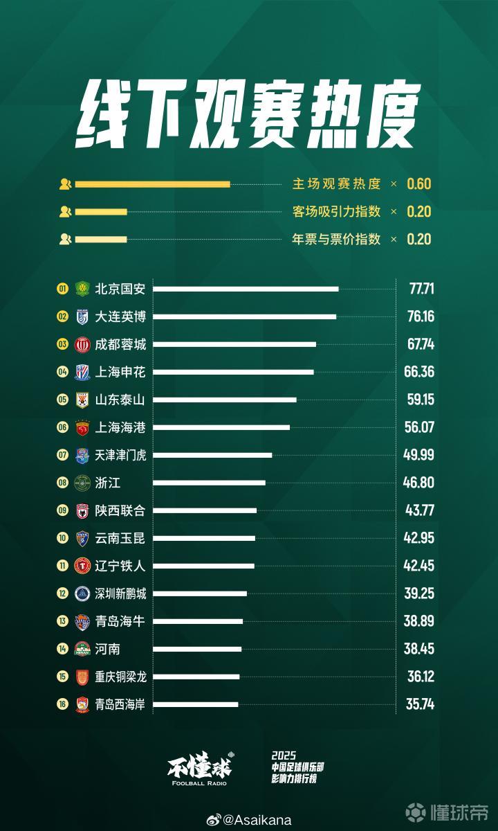不懂球发布了「2025年中国足球俱乐部影响力排行榜」