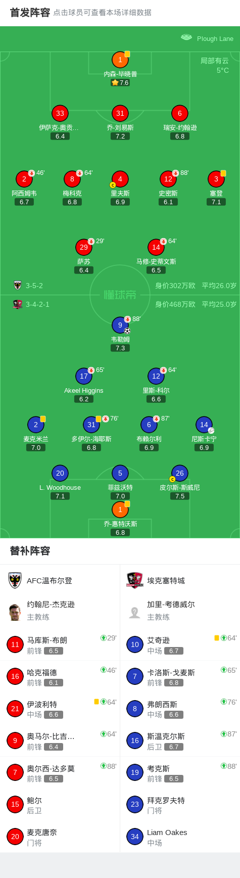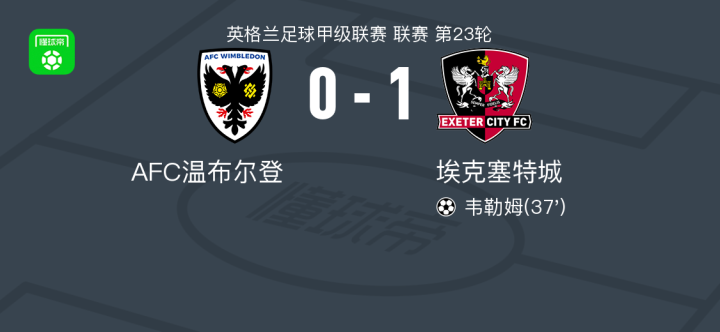 埃克塞特城1-0AFC温布尔登,韦勒姆助球队取胜