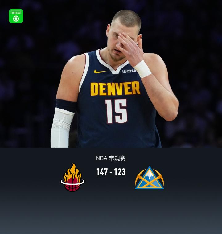热火147-123大胜掘金,约基奇21+5+8伤退,鲍威尔25分