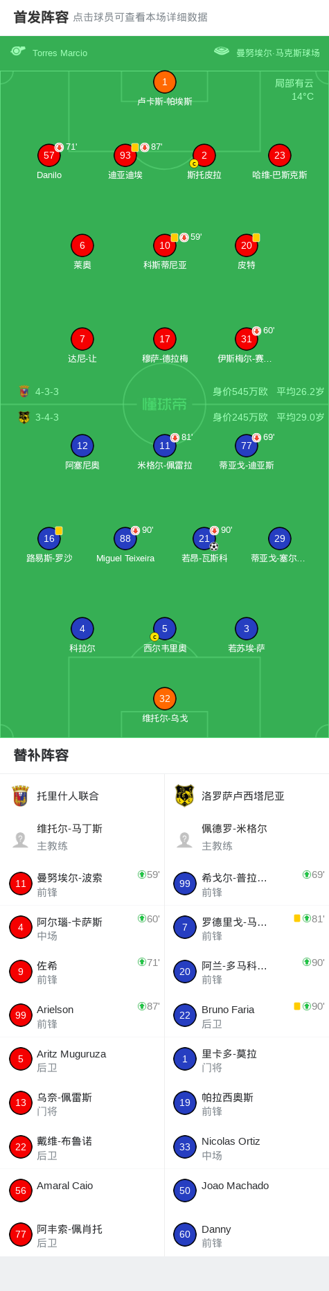 第39分钟,洛罗萨卢西塔尼亚球员若昂-瓦斯科打入一球。