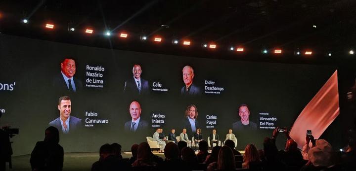 近日,在迪拜举行的世界体育峰会闭幕式上,普约尔、伊涅斯塔、卡福、法比奥-卡纳瓦罗、罗纳尔多以及德尚六位世界杯冠军得主,在皮耶罗的主持下,展开了一场轻松而热烈的对话。