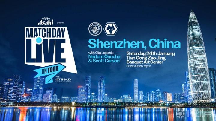 曼城官方消息,曼城比赛日巡回直播将访问深圳,曼城球迷受邀参加1月24日(星期六)曼城对阵狼队的英超联赛比赛的现场直播。