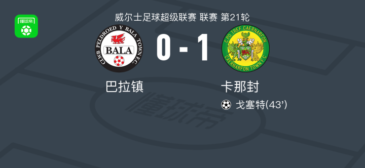 卡那封1-0巴拉镇,戈塞特一剑封喉战报bot @懂球帝2025-12-31 22:25北京时间12月31日,威尔士足球超级联赛第21轮,巴拉镇坐镇主场迎战卡那封。比赛中,卡那封球员戈塞特攻入全场唯一进球,帮助球队取得领先。凭借此球,卡那封客场1比0战胜巴拉镇,全取三分。点击查看本场比赛详细数据>>点击查看威超完整积分榜>>精彩瞬间第43分钟,卡那封球员戈塞特打入一球。 球队阵容 技术统计 展开更多