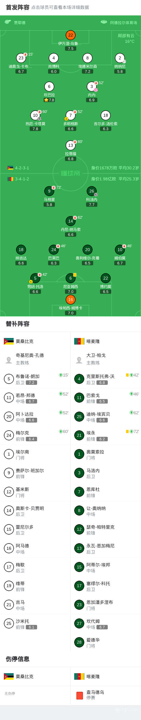 第23分钟,莫桑比克球员纳纳尼助攻热尼-卡塔莫打入一球。
