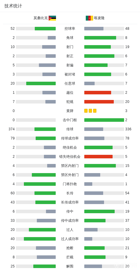 北京时间1月1日非洲国家杯 小组赛 第3轮,莫桑比克对阵喀麦隆。莫桑比克热尼-卡塔莫先下一城,内内打进离谱的乌龙球。下半场,科法内破门为喀麦隆反超。最终,喀麦隆2-1逆转击败莫桑比克。喀麦隆小组第二出线,1/8决赛将战南非。