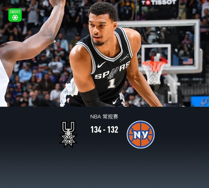 马刺134-132逆转尼克斯,文班亚马31+13伤退,尚帕尼11记三分,布伦森29+8
