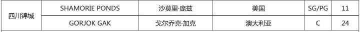 CBA外援注册信息更新:新疆取消理查德森注册;四川新增沙莫里-庞兹