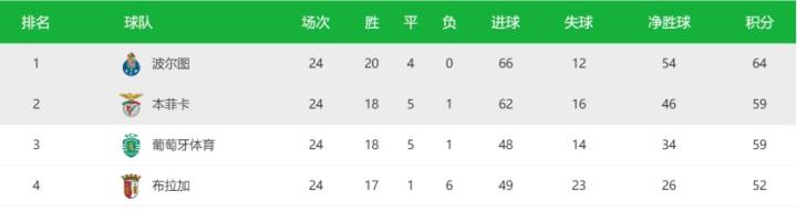 波尔图是本赛季葡超联赛唯一一支未败球队(20胜4平),当前他们领先联赛第二名本菲卡5分,葡萄牙体育以净胜球的劣势不及本菲卡而排在联赛第三位。