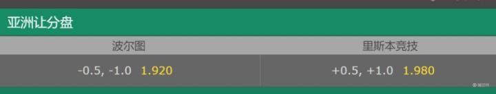 波尔图和葡萄牙体育作为葡超的传统豪强,两队交手次数多达167次,其中波尔图取得64胜44平59负的成绩稍占上风。而波尔图主场战力较为强悍,总战绩为45胜24平14负。对于本场比赛,某主流博彩公司开出了波尔图让出半/一的即时盘口,该盘口水平乃是近三年两队交手的最深盘型,机构对主队支持力度十分明显。