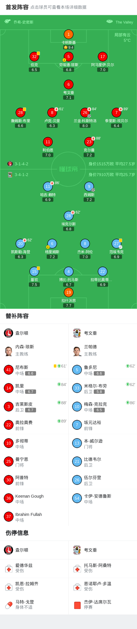 第69分钟,查尔顿球员兰金-科斯特洛打入一球。