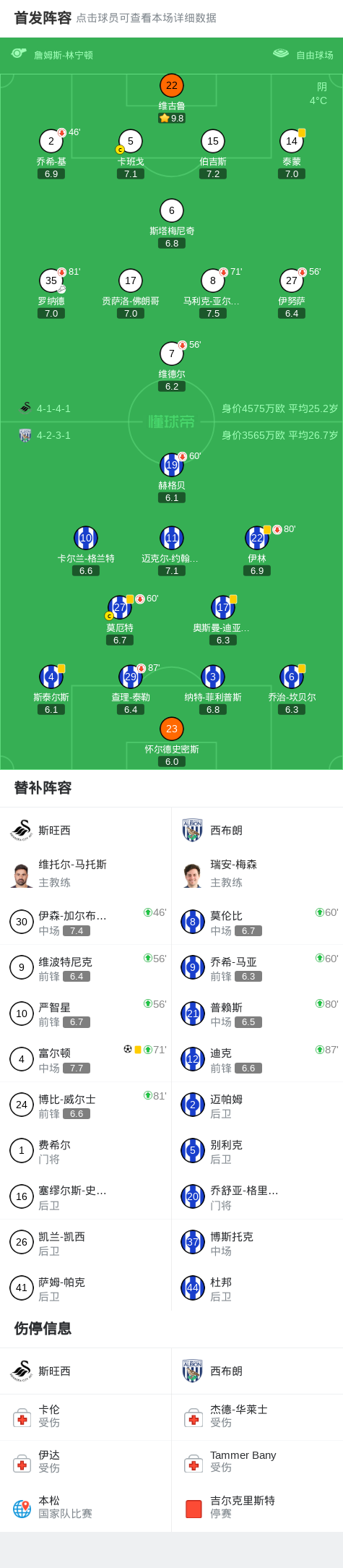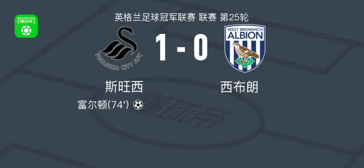 斯旺西1-0西布朗,富尔顿助球队取胜