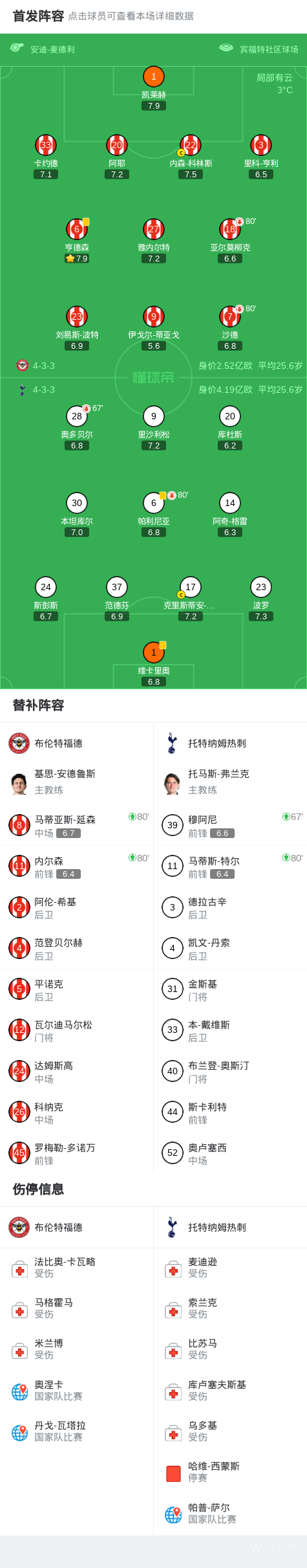 剑南春|热刺0-0布伦特福德,沙德进球被吹,热刺全场3射正