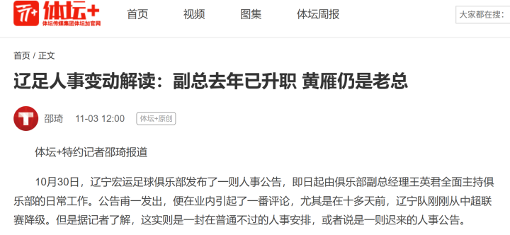 “对于俱乐部的副总经理王英君来说,在2016年的上半年,王英君同志就已经从俱乐部竞训部主管提升到了俱乐部副总经理的职务,并且在当时就已经接管了俱乐部的多项重要业务,只不过俱乐部在当时没有向外界发出公告。据悉,辽足俱乐部副总经理王英君在辽足俱乐部工作已经十余年之久,对于俱乐部的各项工作内容都非常了解,而且在作为竞训部主管时期一直与一线队工作在一起,对于球队的发展情况也非常熟稔。实际上从去年开始,辽足俱乐部的一些重要工作,在董事长兼总经理黄雁因为重要事务而无法分身的时候,就是由王英君来负责的,甚至是一些外援的谈判和签约,都是由王英君来完成的。”
