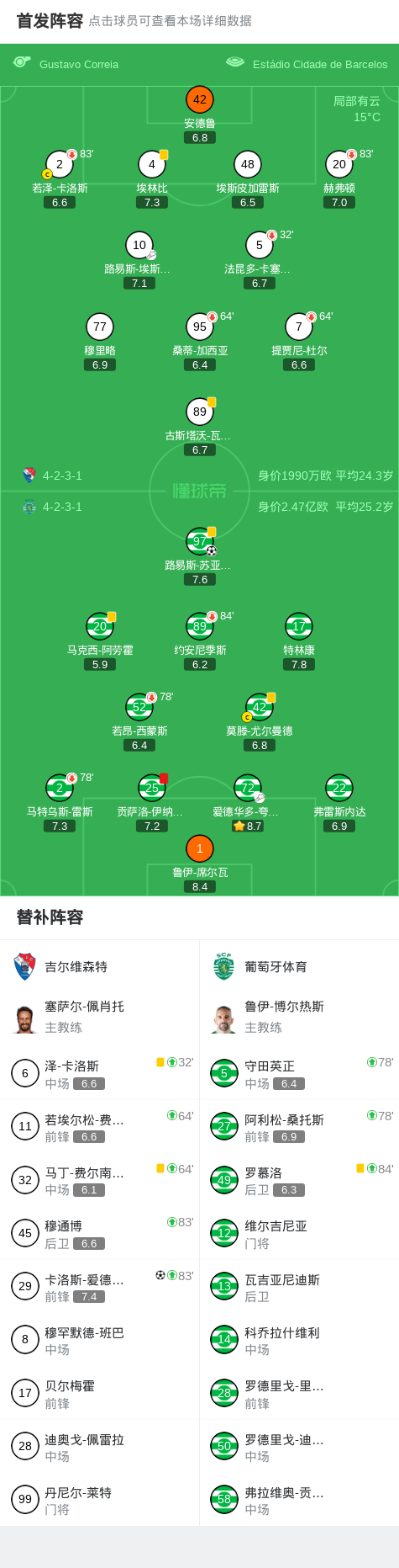 第87分钟,吉尔维森特球员路易斯-埃斯特韦斯助攻卡洛斯-爱德华多打入一球。