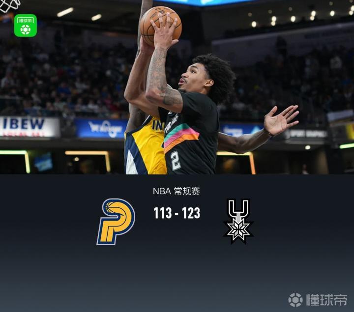 马刺123-113送步行者11连败,福克斯24+7,卡斯尔19+8+8,西卡23+10