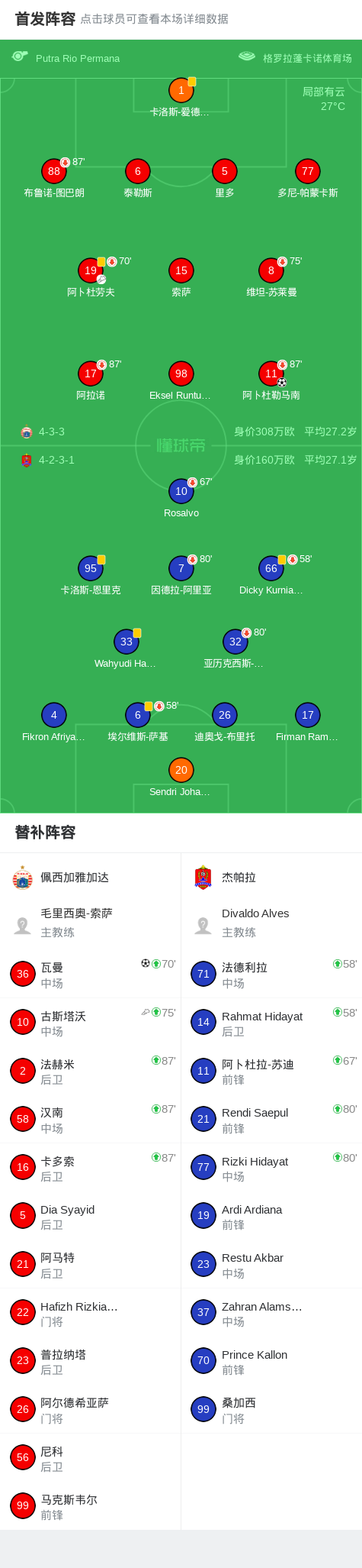 佩西加雅加达2-0杰帕拉,阿卜杜勒马南破门,瓦曼锁定胜局